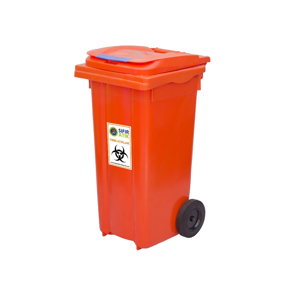 120 Lt. kapasiteli konteynerler 2 tekerlekli ve kapaklıdır.