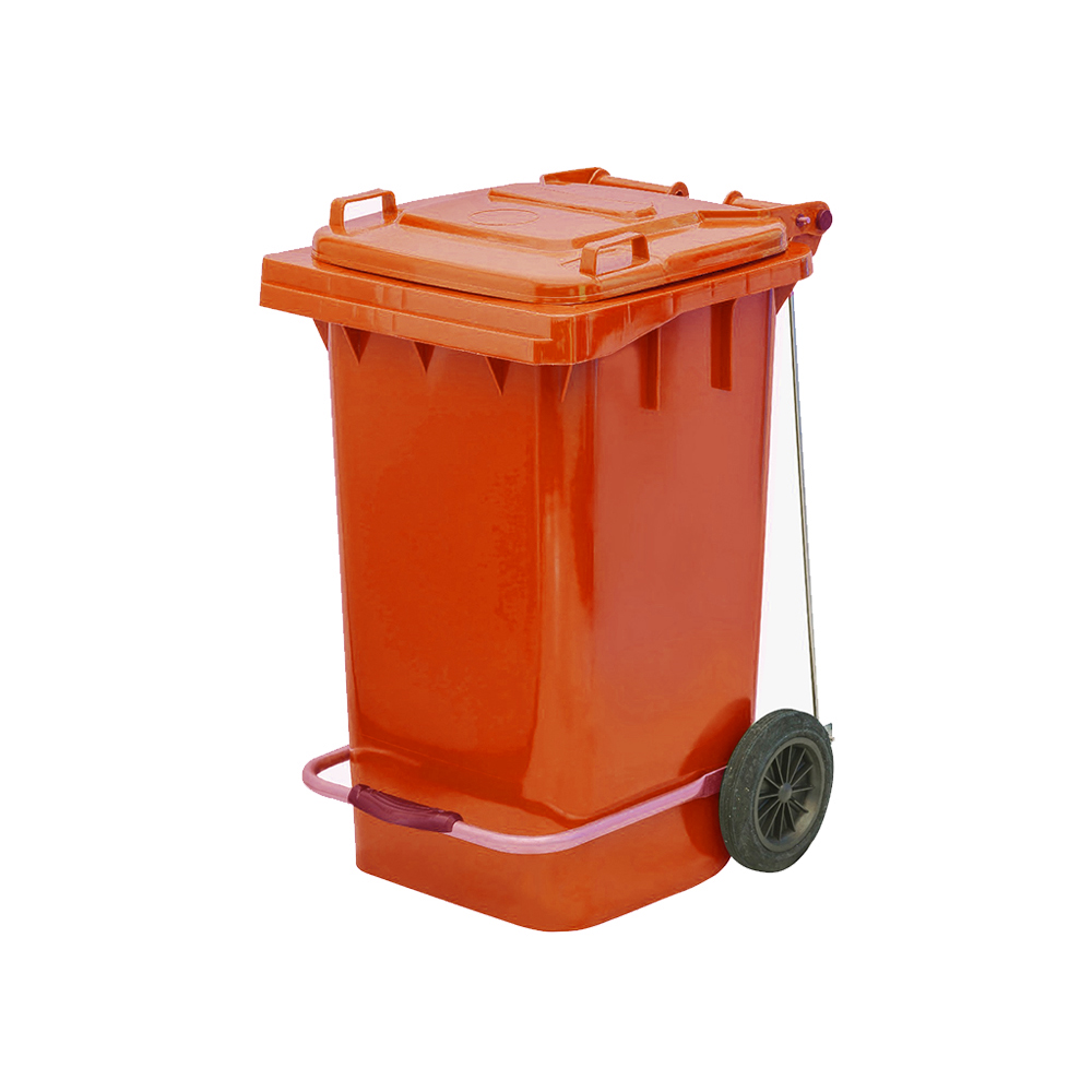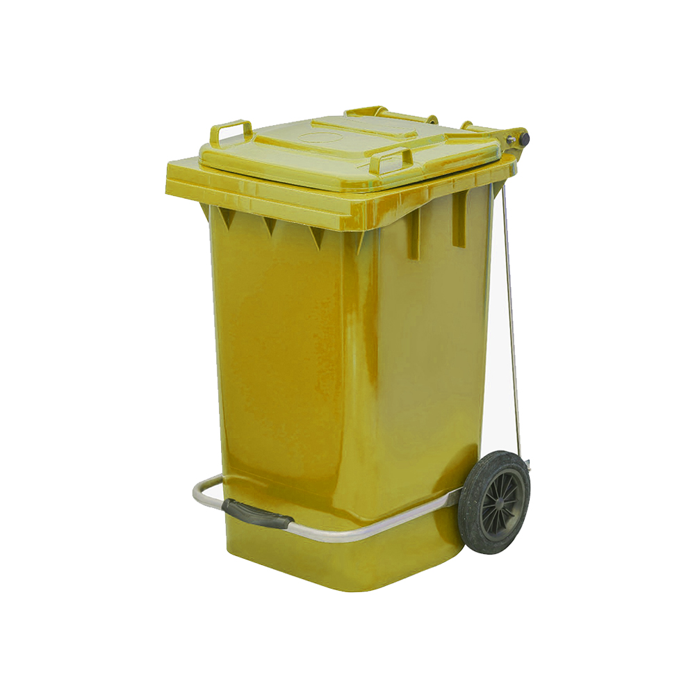 100 Lt. kapasiteli konteynerler 2 tekerlekli ve kapaklıdır.